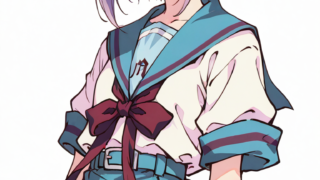 PixAI【Shiitake-Mix】nagato yuki, serafuku,short sleeves, cowboy shot,simplebackground,white background, masterpiece,...