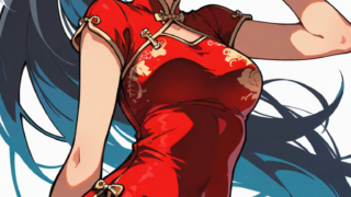 PixAI【Shiitake-Mix】ganaha hibiki, smile,open mouth,red china dress,bike shorts, cowboy shot,simplebackground,white back...