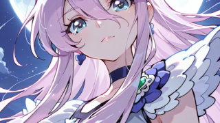 PixAI【Shiitake-Mix】cure moonlight(smile precure), 1girl, big moon, backlighting, upper body, from below, flat chest, du...