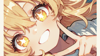 PixAI【Shiitake-Mix】1girl, blonde hair, star print eyes, smile, face, v, dutch angle, masterpiece, high resolution, toki...