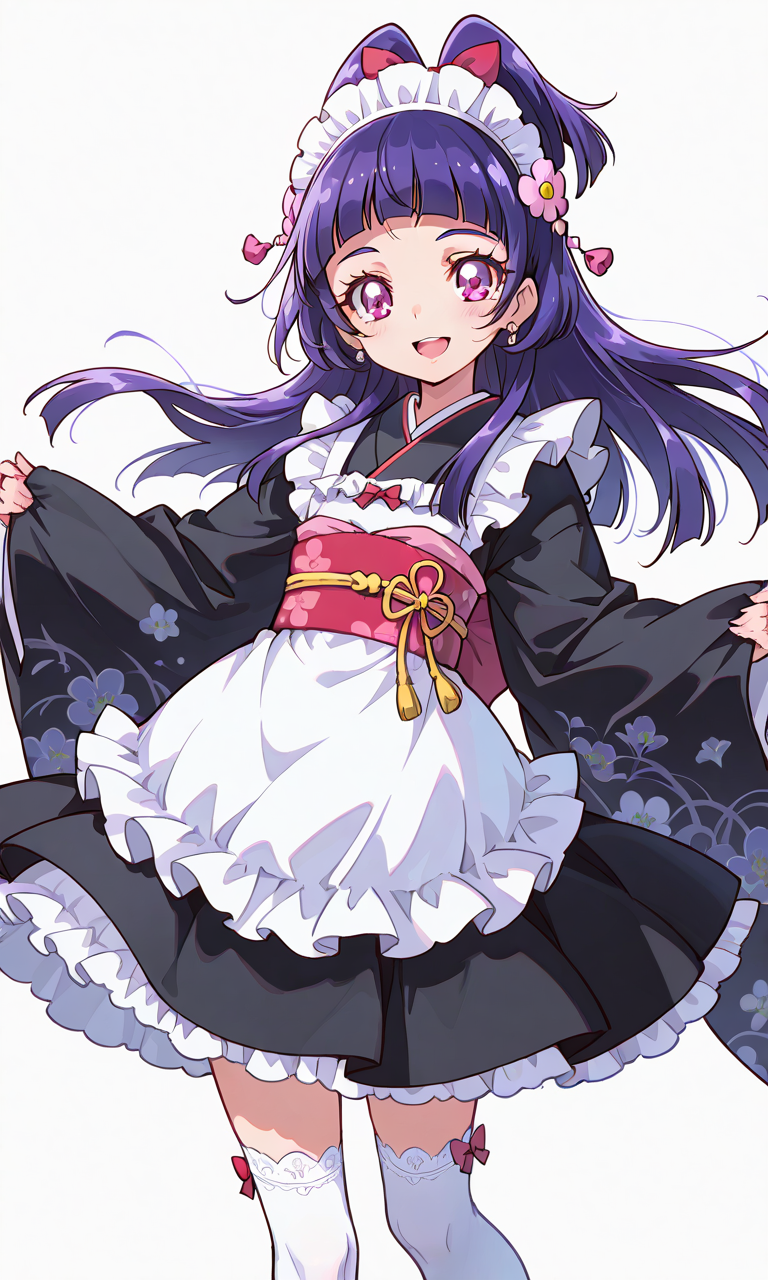 PixAI【Shiitake-Mix】izayoi liko(precure), 1girl, kimono, maid outfit, elegant, hybrid design, black kimono, white la...