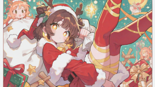 PixAI【Shiitake-Mix】girl,santa costume, cozy North Pole workshop, joyfully packing colorful wrapped presents and toy...
