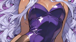 PixAI【Shiitake-Mix】urd (aa megami-sama),solo,purple eyes,dark skin, hujishima kousuke(style),purple bunnygirl,panty...