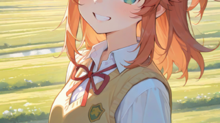 girl,blonde hair, medium hair, wavy hair,hair over one eye,open mouth, green eyes,large ...
