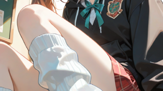 PixAI【Shiitake-Mix】girl,gray hair,short hair, green eyes, jitome, serafuku,miniskirt,red neckerchief, black thighhighs,...