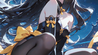 PixAI【Shiitake-Mix】little girl,solo, blonde hair, twintails,blunt bangs,jitome, hairribbon,black ribbon,cat ears ha...