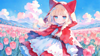 PixAI【Shiitake-Mix】Little Red Riding Hood,little girl,(((solo))), blonde hair, twin braids, blunt bangs,jitome,cat ears...