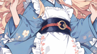 PixAI【Shiitake-Mix】((ukiyo-e)),alice (alice in wonderland), loli,solo,Blue kimono, looking at viewer, smile, wh...