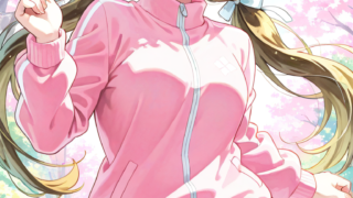 PixAI【Shiitake-Mix】sakurakoji kinako(love live),green eyes,pink track suit,gray miniskirt, pantyhose,smile,open mouth,l...
