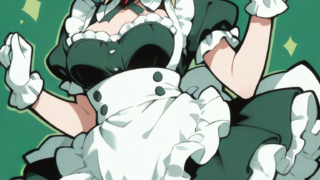 PixAI【Shiitake-Mix】akatsuki kirika(symphogear), 1girl, green theme, smile, open mouth, maid outfit, white gloves, white...