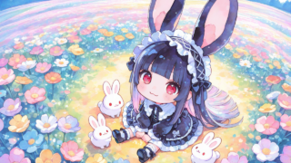 PixAI【Shiitake-Mix】1girl, loli,solo, flower from top of head,pink hair, twintails,hair scrunchie, blouse, pink cardigan...