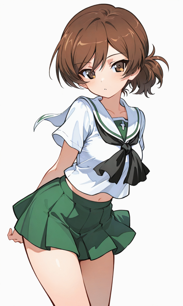 【Shiitake-Mix】kawanishi shinobu(GIRLS und PANZER),ooarai school uniform, short sleeves, cowboy shot,simplebackground,white background,masterpiece,high quality, ,tokiame