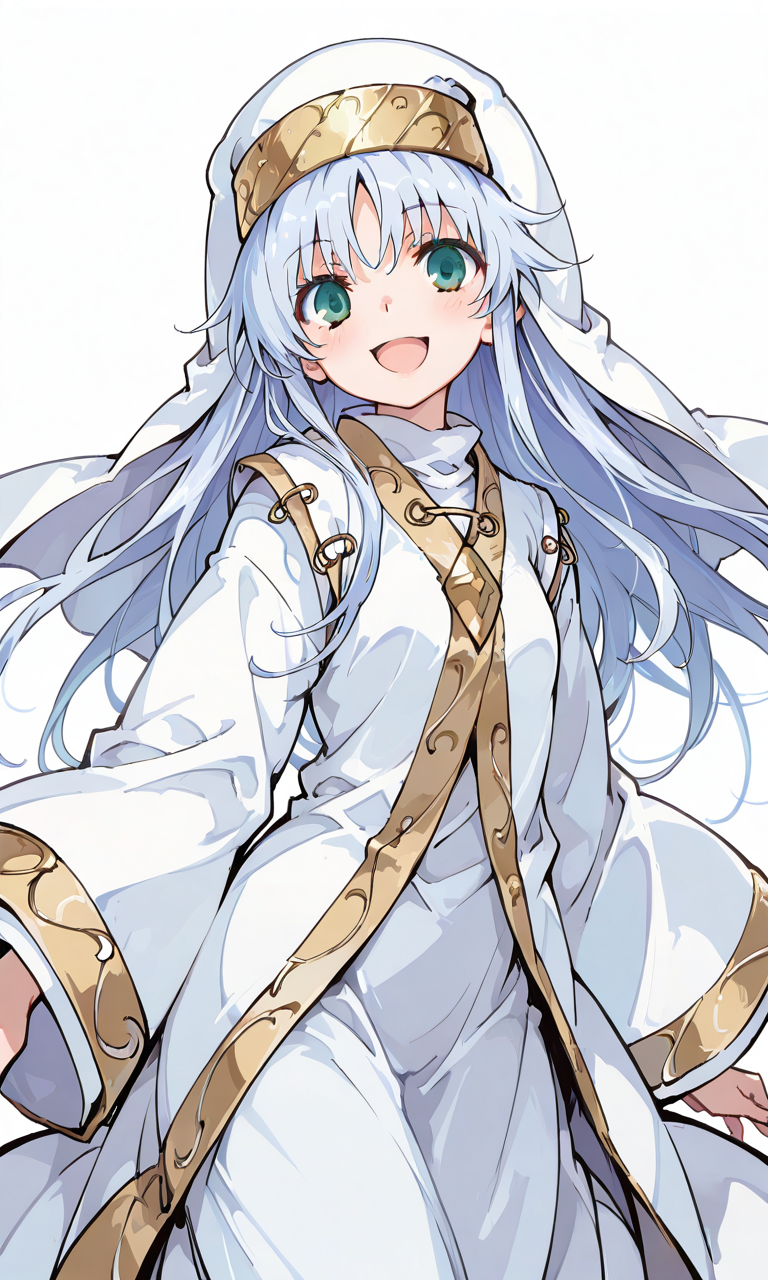 PixAI【Shiitake-Mix】index (toaru majutsu no index), long skirt, looking at viewer, smile, open mouth, cowboy shot, simple background, white background, masterpiece, high quality, high resolution, tokiame, 748cmstyle, fantasy scene