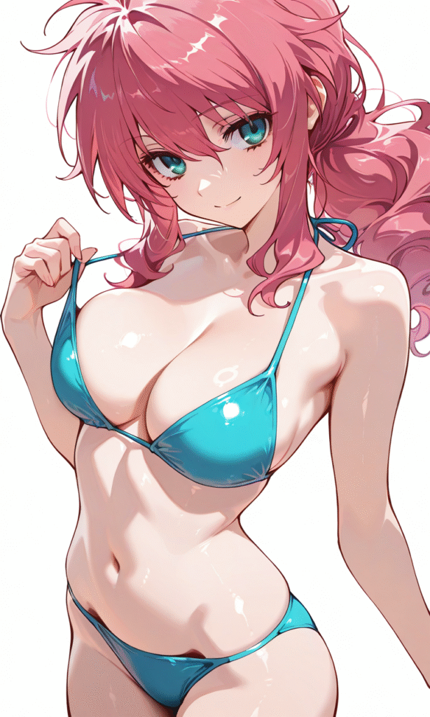 Feldt Grace,smile,bikini,cowboy shot,simplebackground,white background, masterpiece,high quality, ,shiny skin, shiny,tokiame