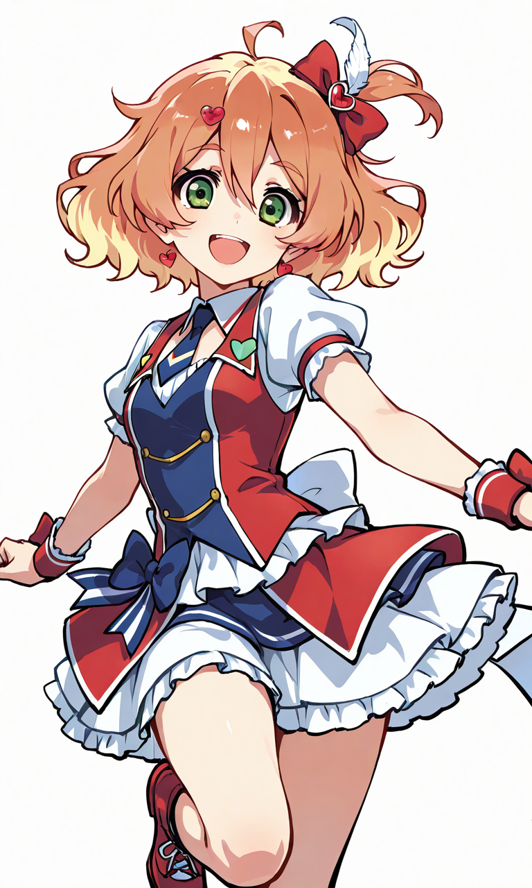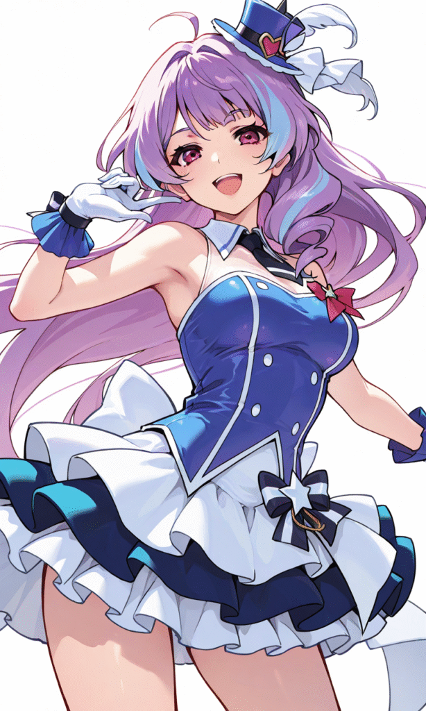 PixAI【Shiitake-Mix】Freyja Wion(MACROSSΔ),smile,open mouth, skipping, idol, cowboy shot,looking at viewer, simplebackground,white background, masterpiece,high quality, ,tokiame