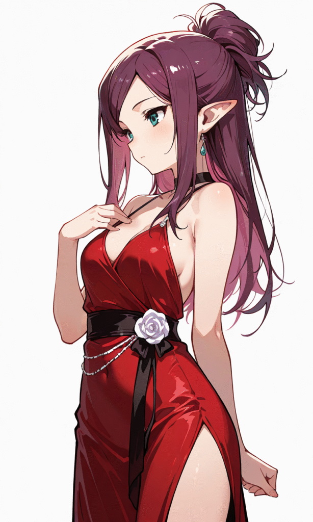 Mirage Farina Jenius(MACROSSΔ),red evening gown,cowboy shot,simplebackground,white background, masterpiece,high quality, ,tokiame