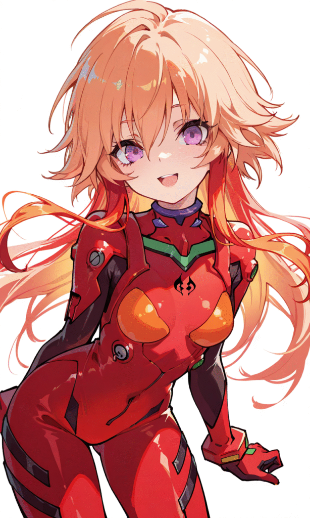 PixAI【Shiitake-Mix】ninomiya asuka,orange hair, red plugsuit, smile,open mouth, cowboy shot,simplebackground,white background, masterpiece,high quality, high resolution,tokiame,NineV