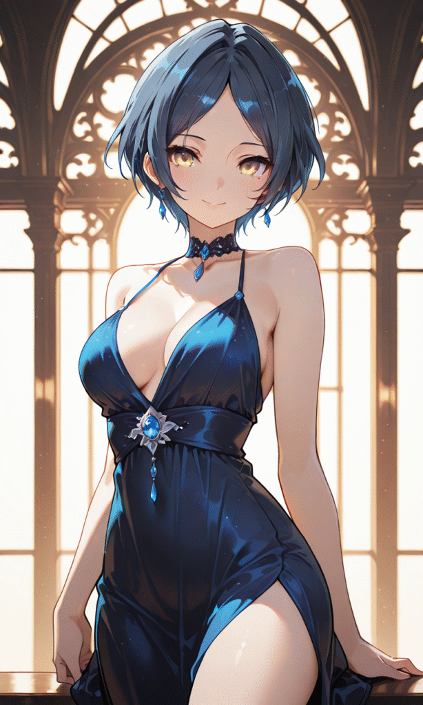 hayami kanade, smile,evening gown. cowboy shot,simplebackground,white background, masterpiece,high quality, high resolution,tokiame,hyper-detailed, high contrast, depth of field, ray tracing, best lighting, cinematic composition, beautiful face, beautiful eyes, sharp focus, (masterpiece:1.2), (best quality:1.2), (very aesthetic:1.2), (absurdres:1.2), (detailed background),