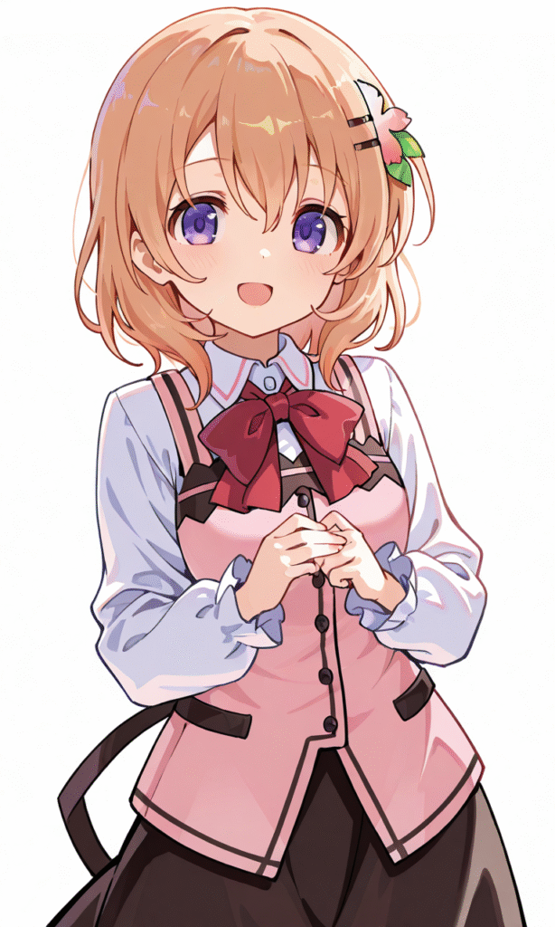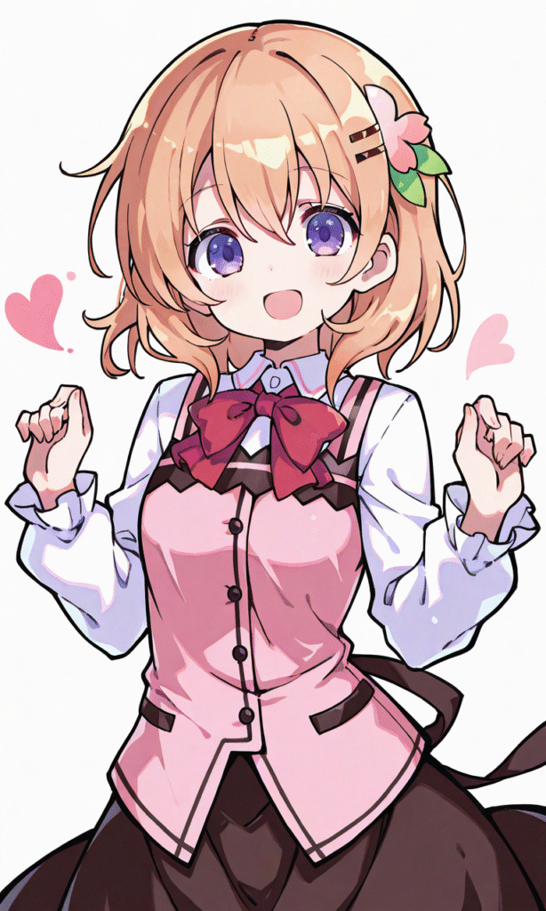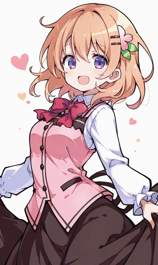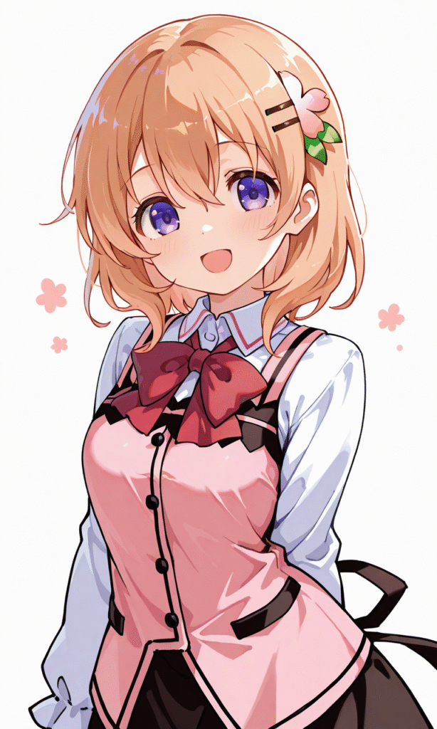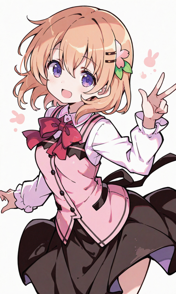 PixAI【Shiitake-Mix】hoto cocoa, smile,open mouth,rabbit house uniform, cowboy shot,simplebackground,white background, masterpiece,high quality, ,tokiame,neon pop art style