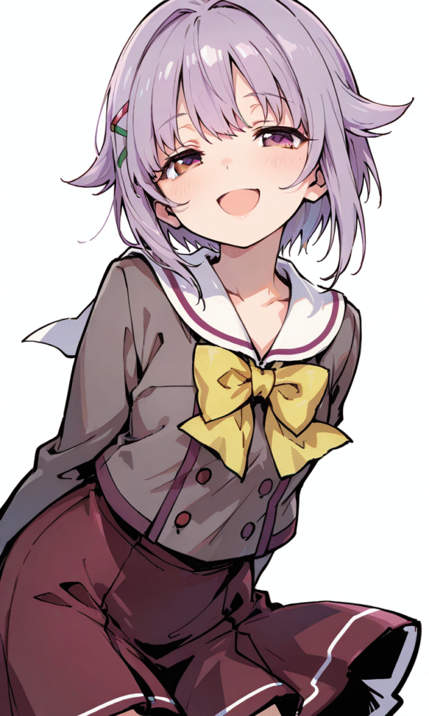 koshimizu sachiko, smile,open mouth, school uniform, cowboy shot,simplebackground,white background, masterpiece,high quality, high resolution