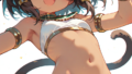 1girl, solo, cat ears, tail, bob cut, messy hair, black hair, amber eyes, tsurime, big eyes, dark skin, small breasts, maid, pantyhose, looking at viewer, smile, open mouth, cowboy shot, simple background, white background, masterpiece, high quality, high resolution, tokiame, chibi, big head, small body, large eyes, blush, simple lines, bright colors, simple colors, cute