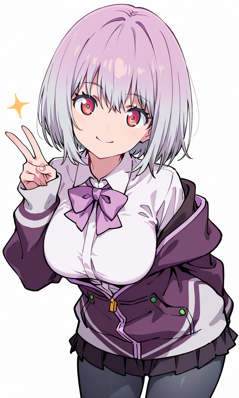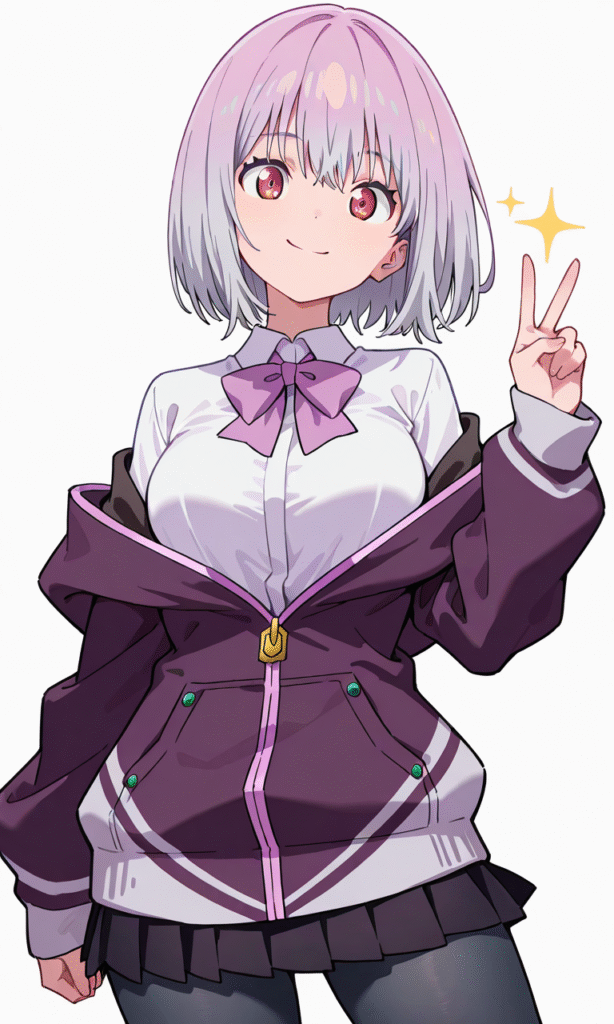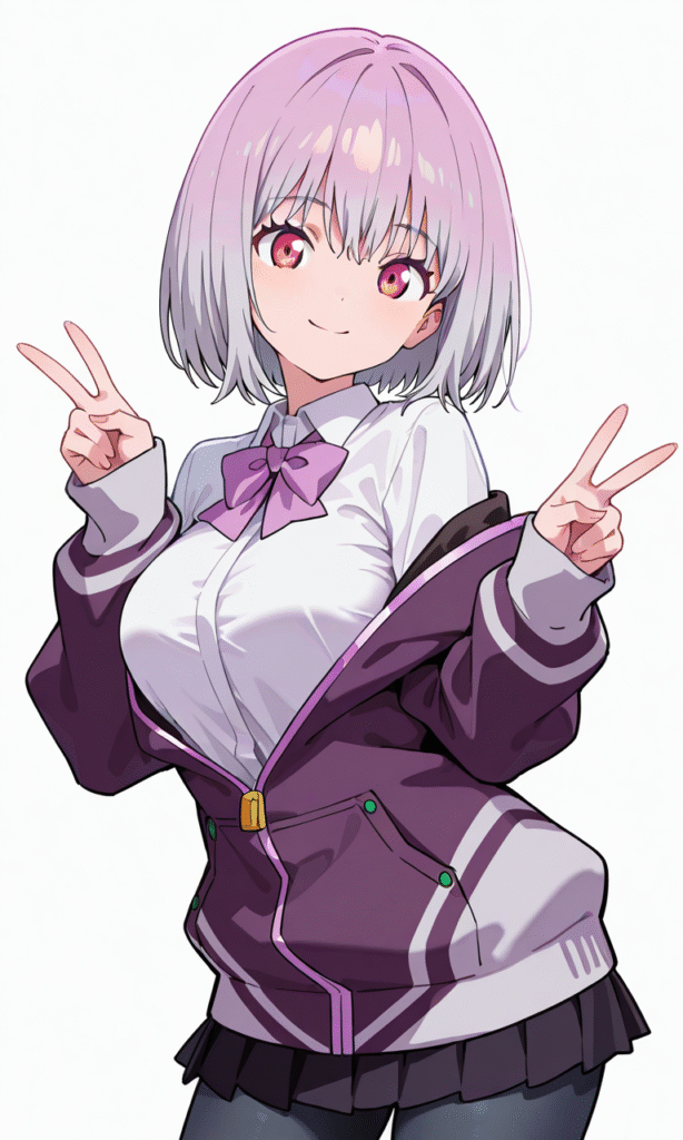 PixAI【Shiitake-Mix】shinjou akane(SSSS.GRIDMAN),smile,v,v,pantyhose, cowboy shot,simplebackground,white background, masterpiece,high quality, ,tokiame