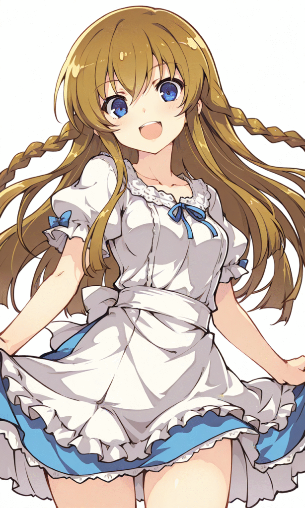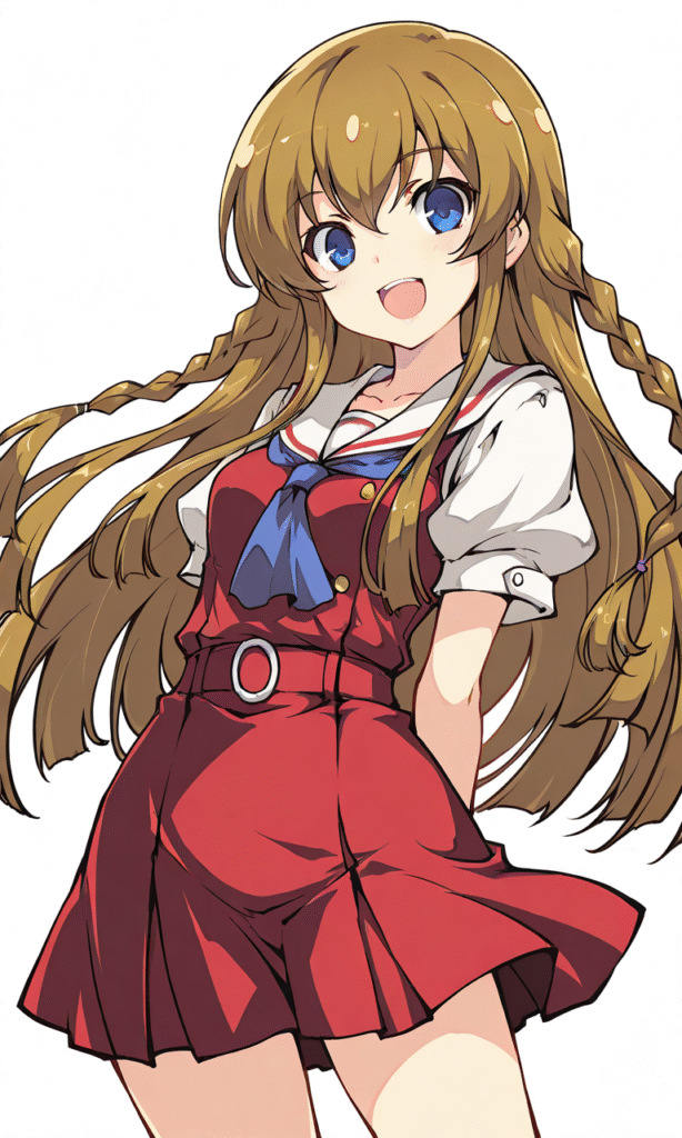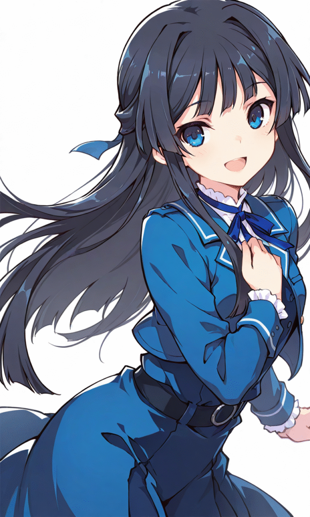 PixAI【Shiitake-Mix】mogami shizuka, smile, open mouth, cowboy shot, simple background, white background, masterpiece, high quality, high resolution, tokiame