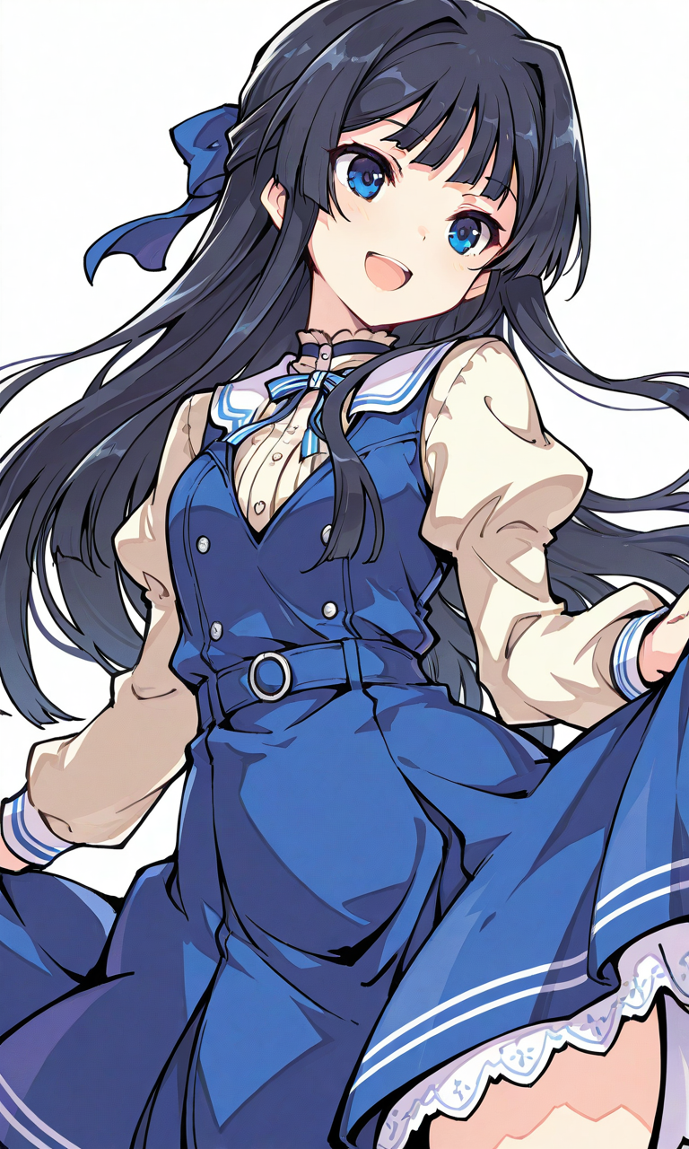 PixAI【Shiitake-Mix】mogami shizuka, smile, open mouth, cowboy shot, simple background, white background, masterpiece, high quality, high resolution, tokiame