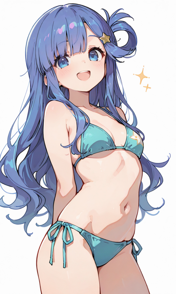 PixAI【Shiitake-Mix】asari nanami, smile,open mouth,bikini, cowboy shot,simplebackground,white background, masterpiece,high quality, high resolution