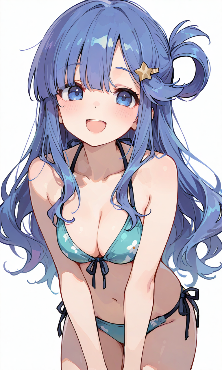 PixAI【Shiitake-Mix】asari nanami, smile,open mouth,bikini, cowboy shot,simplebackground,white background, masterpiece,high quality, high resolution