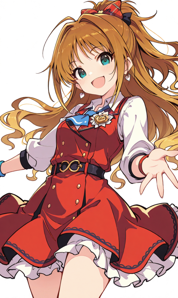 hino akane (idolmaster), smile,open mouth, cowboy shot,simplebackground,white background, masterpiece,high quality, high resolution,,tokiame