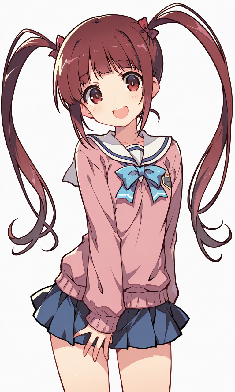 PixAI【Shiitake-Mix】1girl, tanaka kotoha, smile, open mouth, cowboy shot, simple background, white background, masterpiece, high quality, high resolution, tokiame