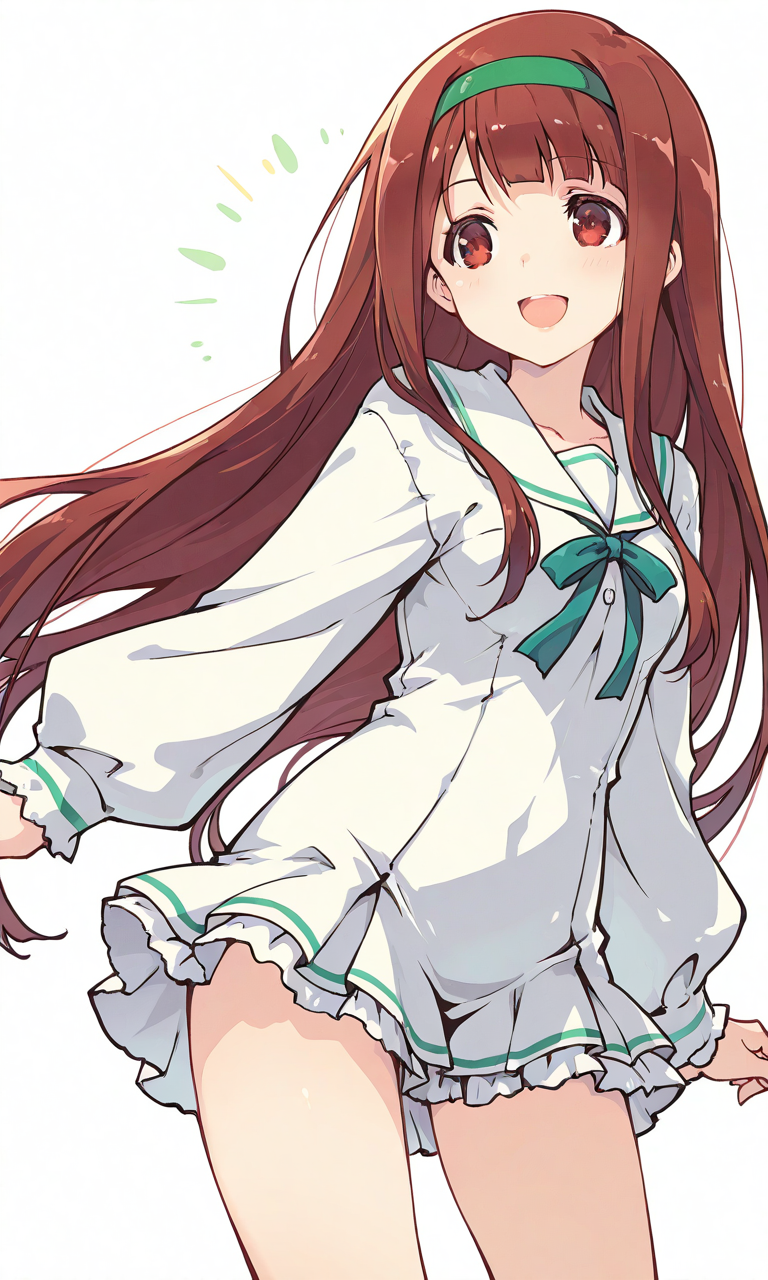 PixAI【Shiitake-Mix】1girl, tanaka kotoha, smile, open mouth, cowboy shot, simple background, white background, masterpiece, high quality, high resolution, tokiame