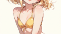 taneshima popura,dress shirt,short sleeves, neck ribbon,black skirt, cleavage reach,,pink bra,cowboy shot,smile,open mouth,simple background, masterpiece,high resolution,high quality, ,high-res