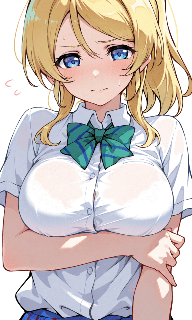 ayase eli, otonokizaka school uniform, short sleeves, breast hold, embarrassed,upper body, simplebackground,white background, masterpiece,high quality, high resolution,tokiameayase eli, otonokizaka school uniform, short sleeves, breast hold, embarrassed,upper body, simplebackground,white background, masterpiece,high quality, high resolution,tokiame