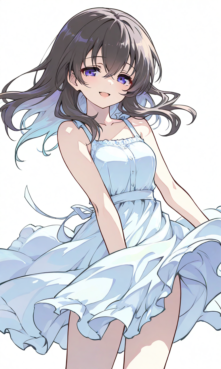 PixAI【Shiitake-Mix】fujiwara hajime,light blue sundress, smile,open mouth, cowboy shot,simplebackground,white background, masterpiece,high quality, high resolution,tokiame,Beautiful eyes,detailed,soft colors