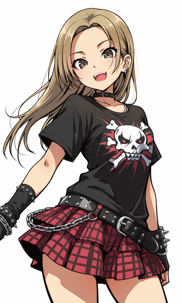 matsunaga ryo,rock’n’roll,punk fashion,smile,open mouth, cowboy shot,simplebackground,white background, masterpiece,high quality, high resolution,tokiame
