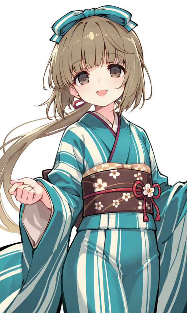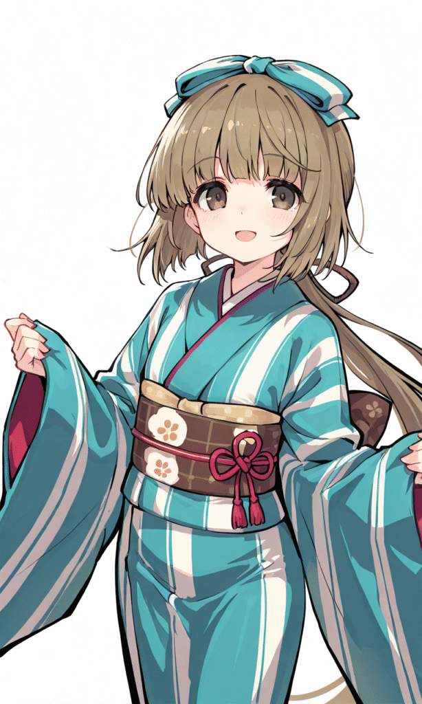 yorita yoshino, kimono, smile,open mouth, cowboy shot,simplebackground,white background, masterpiece,high quality, high resolution,,tokiame
