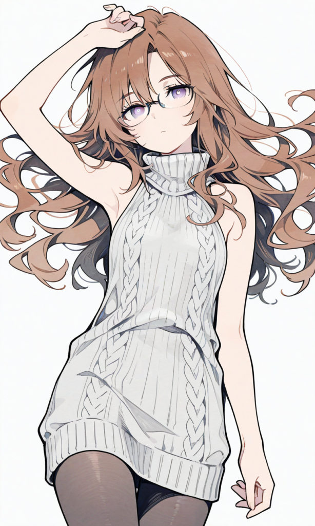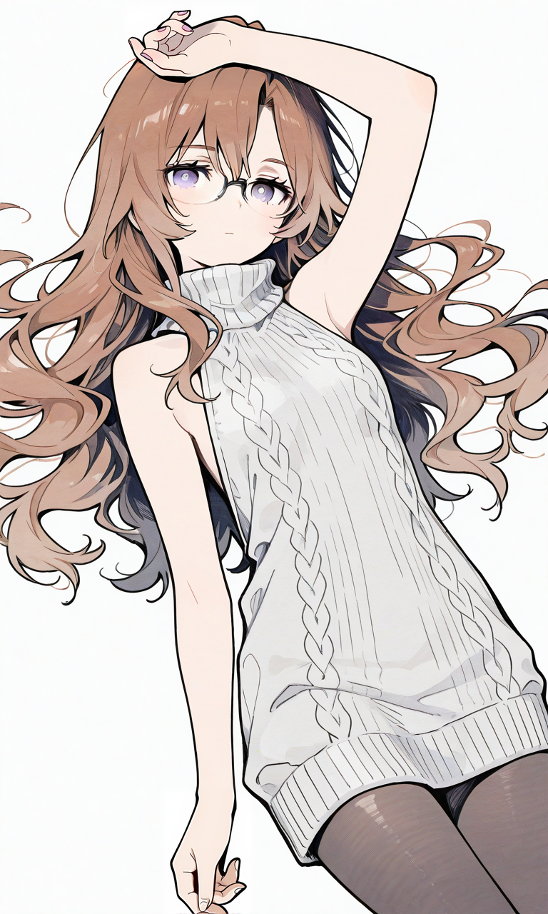 PixAI【Shiitake-Mix】kiryuu moeka(STEINS;GATE),glasses,virgin killer sweater,white sweater, wavy hair, pantyhose,expressionless,lying, arm up,simple background, white background, cowboy shot,masterpiece,high resolution,high quality, ,Black and Grey, crosshatching, dark aesthetic, clean, background texture, bold outline, abstract, cropped, cropped background, ultra detailed,(watercolor_(medium):1.2)(simple coloring,flat color:2)dutch angle