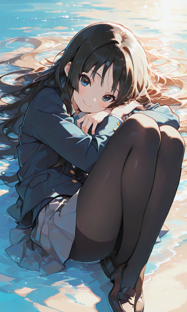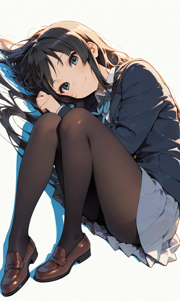 PixAI【Shiitake-Mix】akiyama_mio(k-on), 1girl, school_uniform, blazer, ((black pantyhose)), smile, lying, ((on back)), full_body, knee_to_chest, looking_at_viewer, masterpiece, high_resolution, ((simple_background)), hyper_detailed, high_contrast, depth_of_field, ray_tracing, best_lighting, cinematic_composition, beautiful_face, beautiful_eyes, sharp_focus, (masterpiece:1.2), (best_quality:1.2), (very_aesthetic:1.2), (absurdres:1.2), (detailed_background)