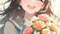 PixAI【Shiitake-Mix】1girl, ana coppola, Gothic Lolita, smile, cowboy shot, wariza, roses on the floor, masterpiece, high quality, high resolution, high-res, ♡masterpiece, highest quality, ♡, watercolor, sketch style, watercolor effect, pastel colors