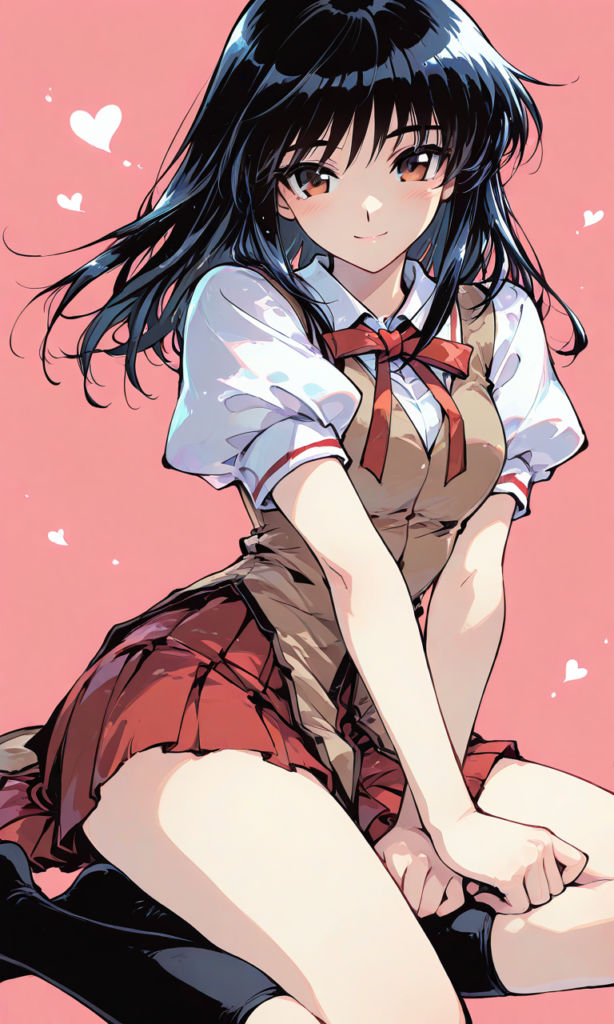 tsukamoto yakumo(school rumble), 1girl, school uniform, puffy sleeves, light smile, yokozuwari, black socks, cowboy shot, simple background, masterpiece, high resolution, high quality, high-res, ♡masterpiece, highest quality, ♡, tokiame
