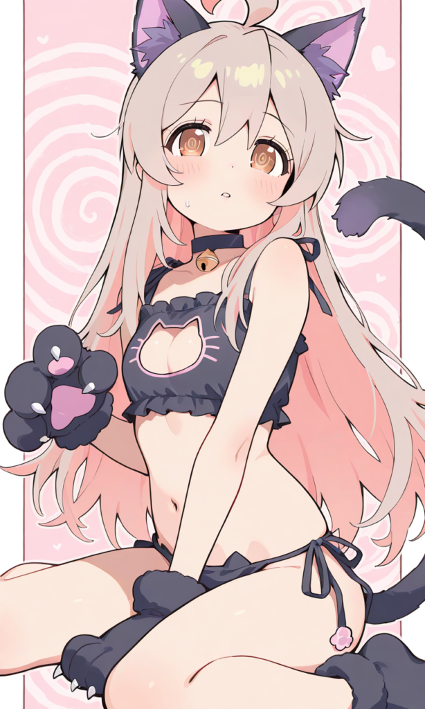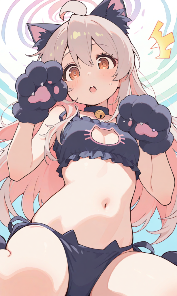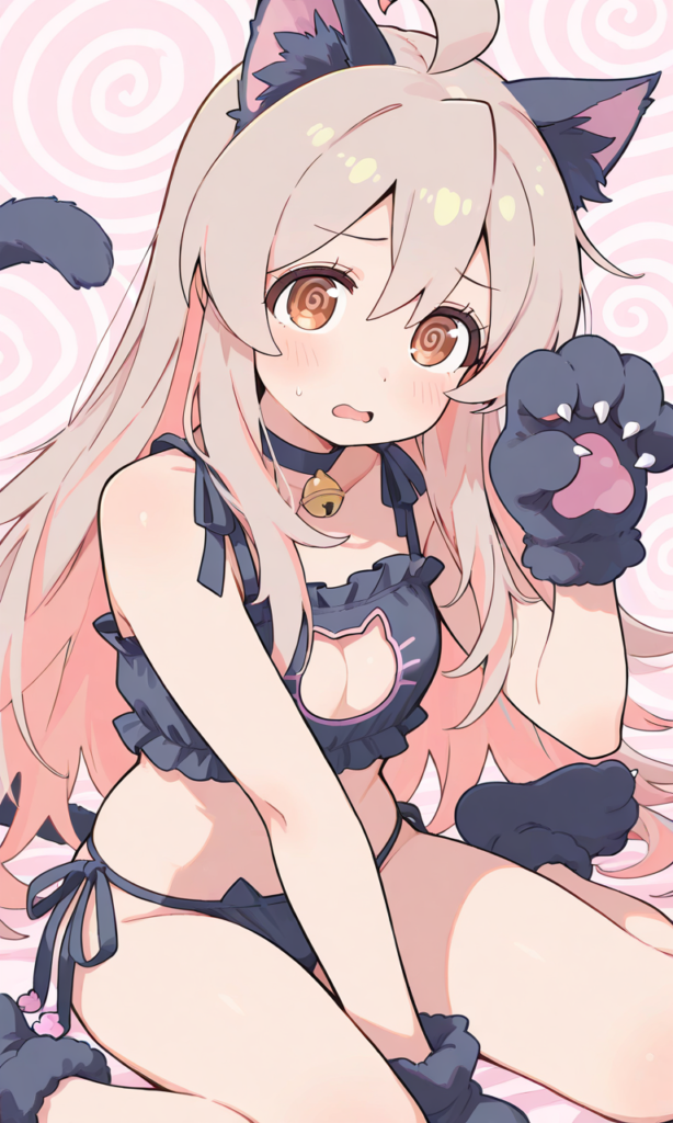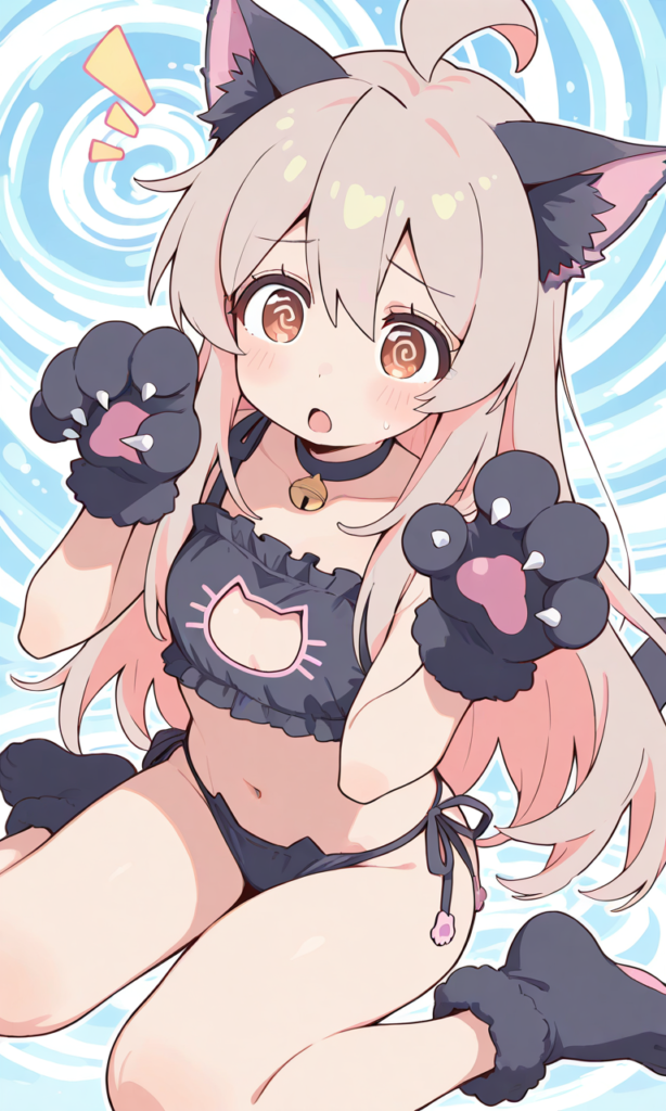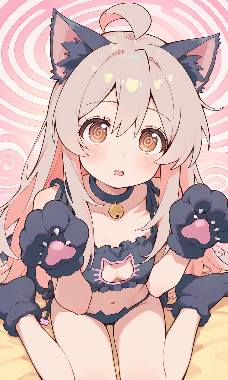 PixAI【Shiitake-Mix】onimai,oyama mahiro,solo,cat lingerie,cat ears,cat hands,wariza,((spiral-only eyes)), surprised, open mouth,lucky cat pose,looking at viewer, masterpiece,high resolution,high quality, ,♡masterpiece, highest quality, ♡,high-res
