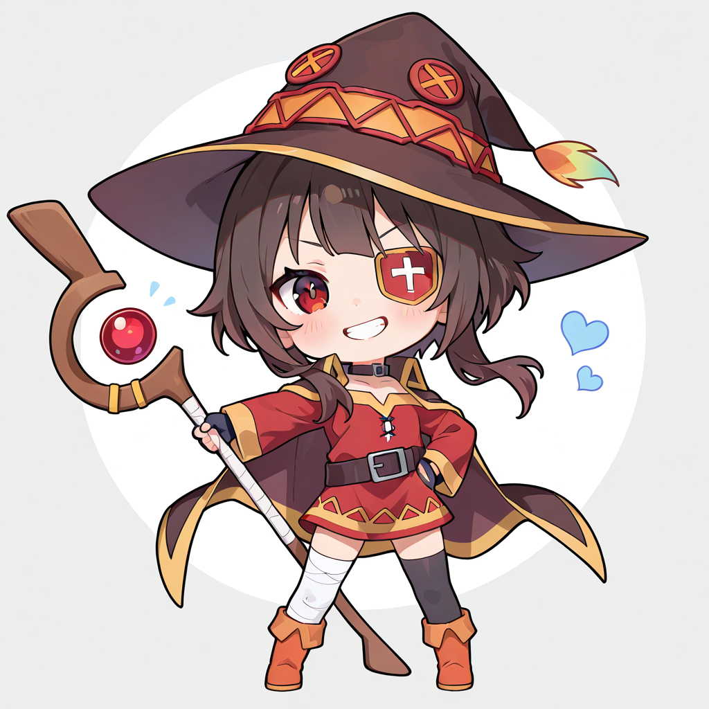 megumin,((chibi)),((solo)), grin,eyepatch,full body, masterpiece,high quality,high resolution ,♡masterpiece, highest quality, ♡