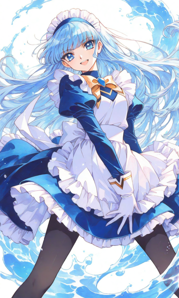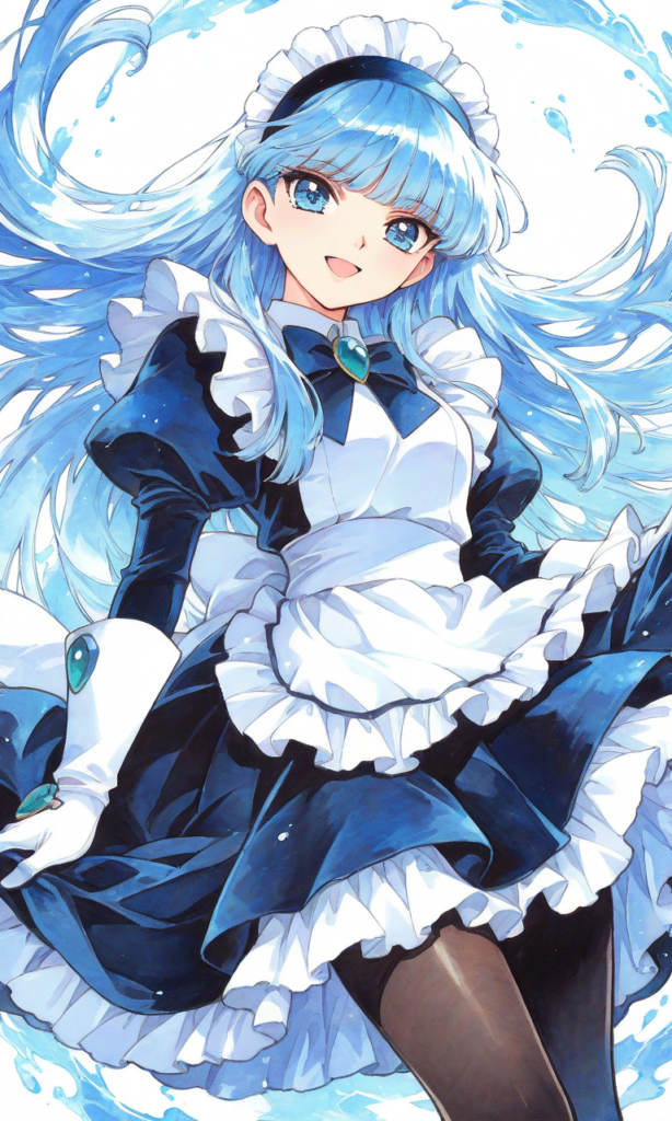 PixAI【Shiitake-Mix】ryuuzaki umi(Magic Knight Rayearth),clamp (circle) (style),solo,maid, white gloves, black pantyhose,smile,open mouth, masterpiece,high resolution,high quality, ,high-res,[Watercolor], soft lines, harmonious color palette