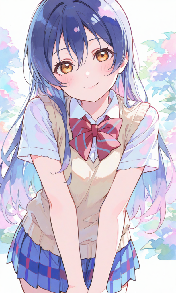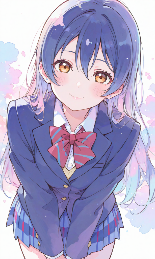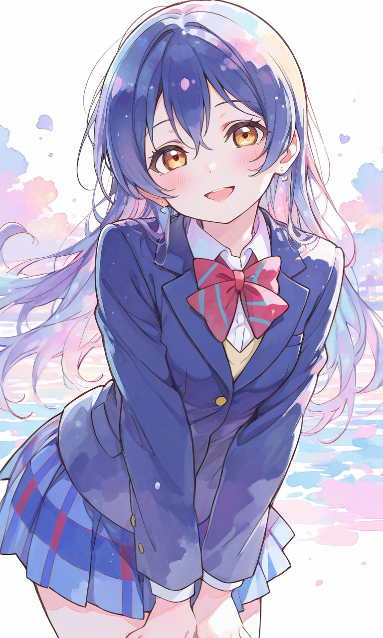 PixAI【Shiitake-Mix】love live,sonoda umi,otonokizaka school uniform, blazer,red bowtie,smile, open mouth,cowboy shot,looking at viewer, masterpiece,high quality,high resolution,♡masterpiece, highest quality, ♡,high-res,watercolor, sketch style, watercolor effect, pastel colors