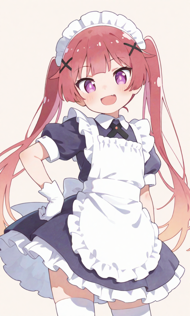 1girl, tanemura koyori, loli, smile, open mouth, maid, maid headdress, puffy short sleeves, white gloves, white thighhighs, cowboy shot, masterpiece, high resolution, high quality, looking at viewer, hand on own hip, simple background, high-res, red hair, long hair, twintails, x hair ornaments, pinkish-purple eyes, [Watercolor], soft lines, harmonious color palette1girl, tanemura koyori, loli, smile, open mouth, maid, maid headdress, puffy short sleeves, white gloves, white thighhighs, cowboy shot, masterpiece, high resolution, high quality, looking at viewer, hand on own hip, simple background, high-res, red hair, long hair, twintails, x hair ornaments, pinkish-purple eyes, [Watercolor], soft lines, harmonious color palette