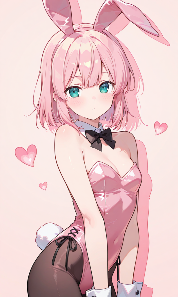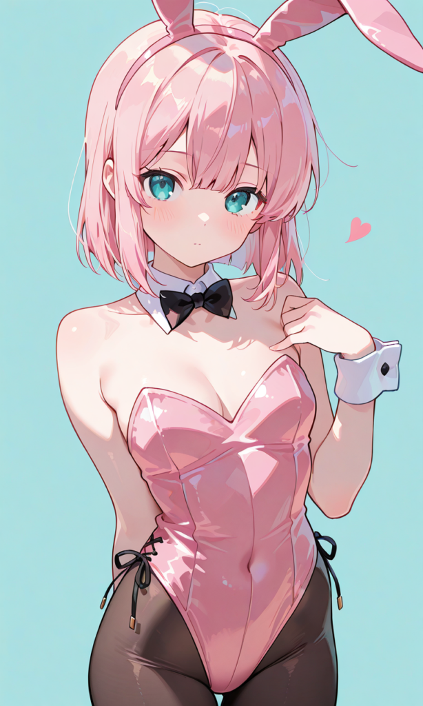 PixAI【Shiitake-Mix】chiyoda momo, pink Bunnygirl,pantyhose,fake rabbit ears, no hair ornament, looking at viewer,cowboy shot, drop shadow, simple background,masterpiece,high quality, high resolution,♡masterpiece, highest quality, ♡
