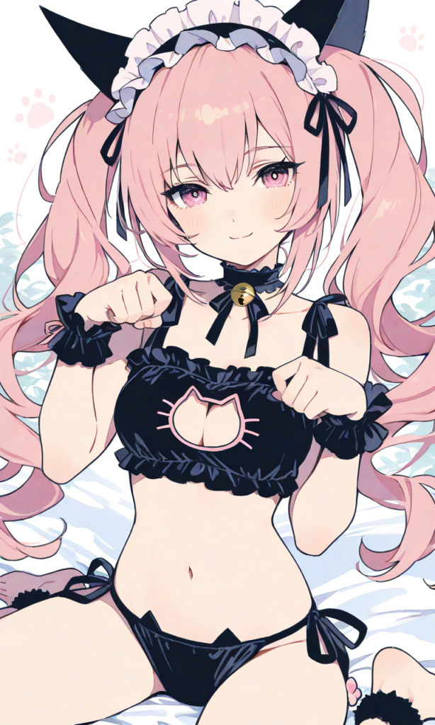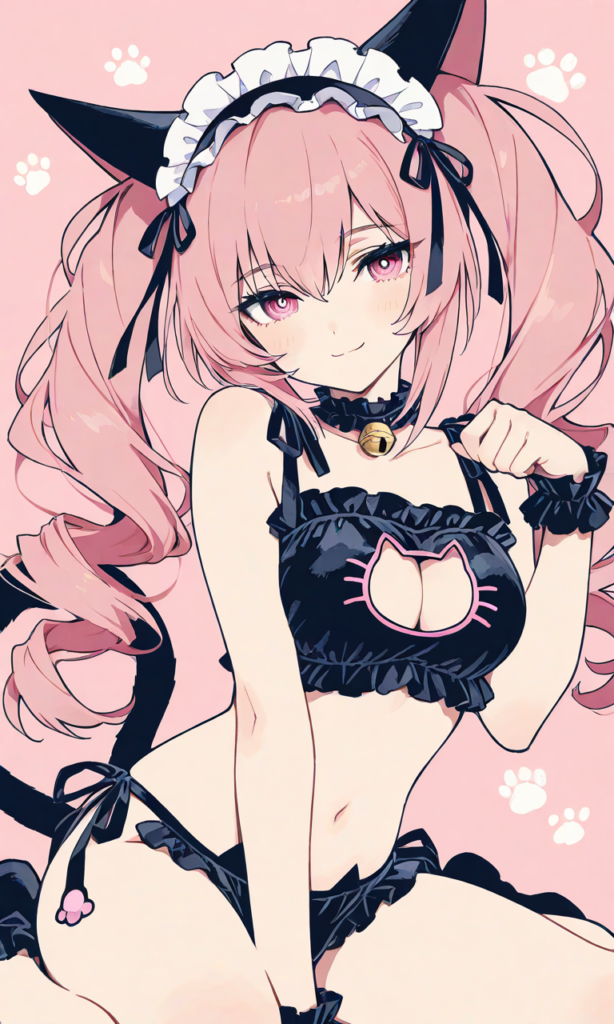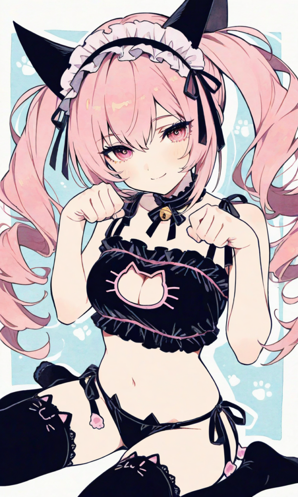 PixAI【Shiitake-Mix】STEINS;GATE,akiha rumiho, pink hair, cat lingerie,white headdress,black thighhighs, wariza, smile,lucky cat pose,cowboy shot,masterpiece,high resolution,high quality, ,high-res,(watercolor_(medium):1.2)(simple coloring,flat color:2)dutch angle,watercolor, sketch style, watercolor effect, pastel colors