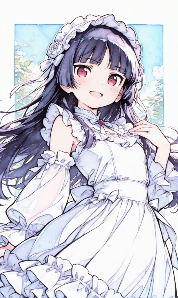 PixAI【Shiitake-Mix】ore no imouto,gokou ruri,((no ears)), gothic lolita,white dress,
